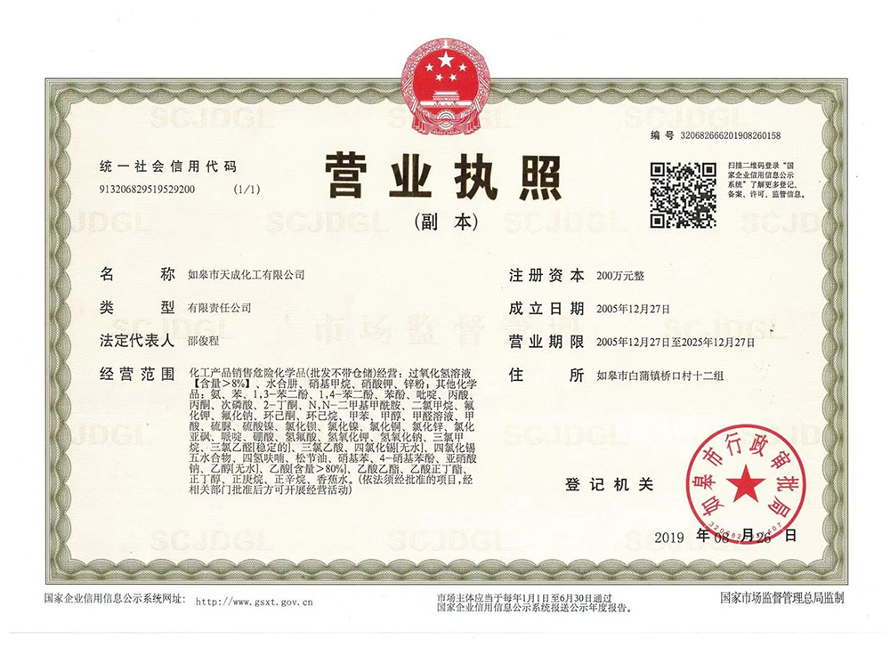 如皋市天成化工專業為您服務: